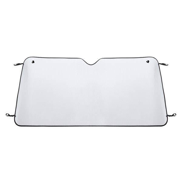 Идеальный большой солнцезащитный экран для грузовиков и микроавтобусов. Обе стороны из пузырчатого алюминия с черной окантовкой. Металлические проушины с присосками и эластичные ремни для складывания прилагаются.