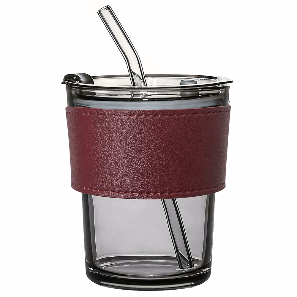 Стеклянный стакан также функционален и универсален. Он подходит для различных типов напитков — от теплого кофе или чая (не более 60-70С температура жидкости) до прохладного сока или коктейля. Капхолдер съемный. При мойке стеклянных стаканов нельзя использовать абразивные чистящие средства, также нельзя использовать в микроволновой печи, духовке, и в посудомоечной машине. Материал стакана и трубочки — стекло, крышка стакана выполнена из высококачественного пластика, капхолдер из полиуретана.