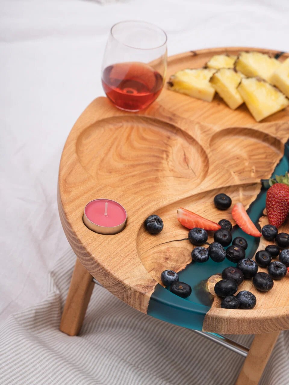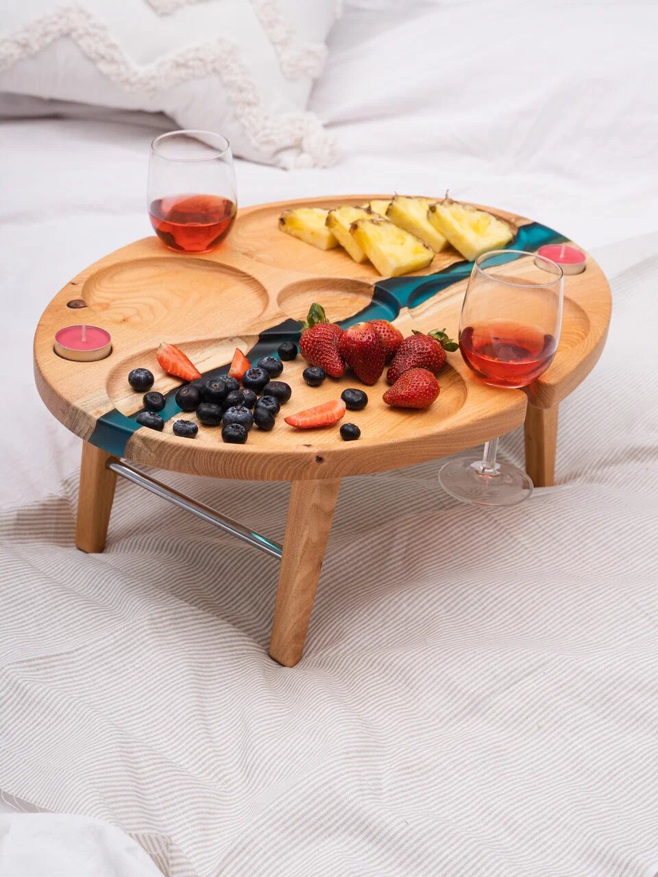 Сервировочный столик с ювелирным полимером украсит романтическое свидание с любимым человеком.