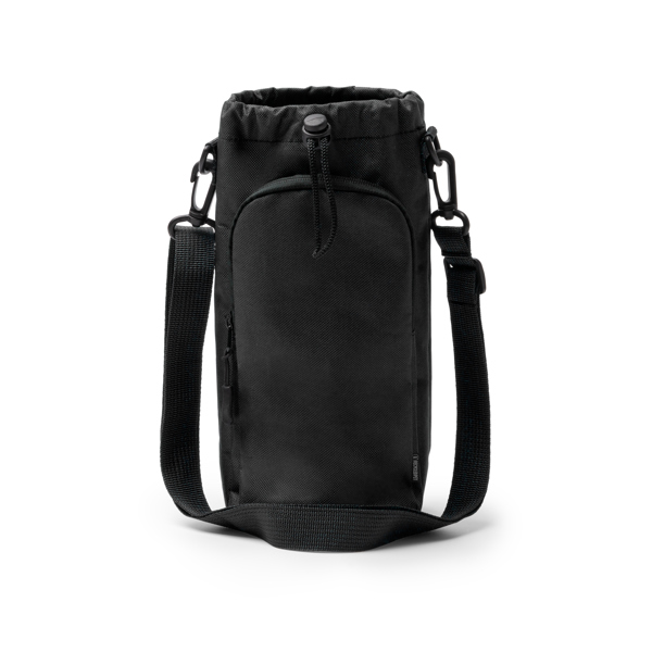 Сумка на плечо для бутылок объемом до 2,5 л из RPET 600D с регулируемой застежкой на кулиске. Большой внешний карман с широким отверстием и застежкой-молнией в цвете, соответствующем корпусу, с черной застежкой-молнией. Имеет регулируемый ремень с креплениями для транспортировки, который снимается благодаря встроенному карабину. Внутренняя подкладка делает ее более прочной и долговечной.