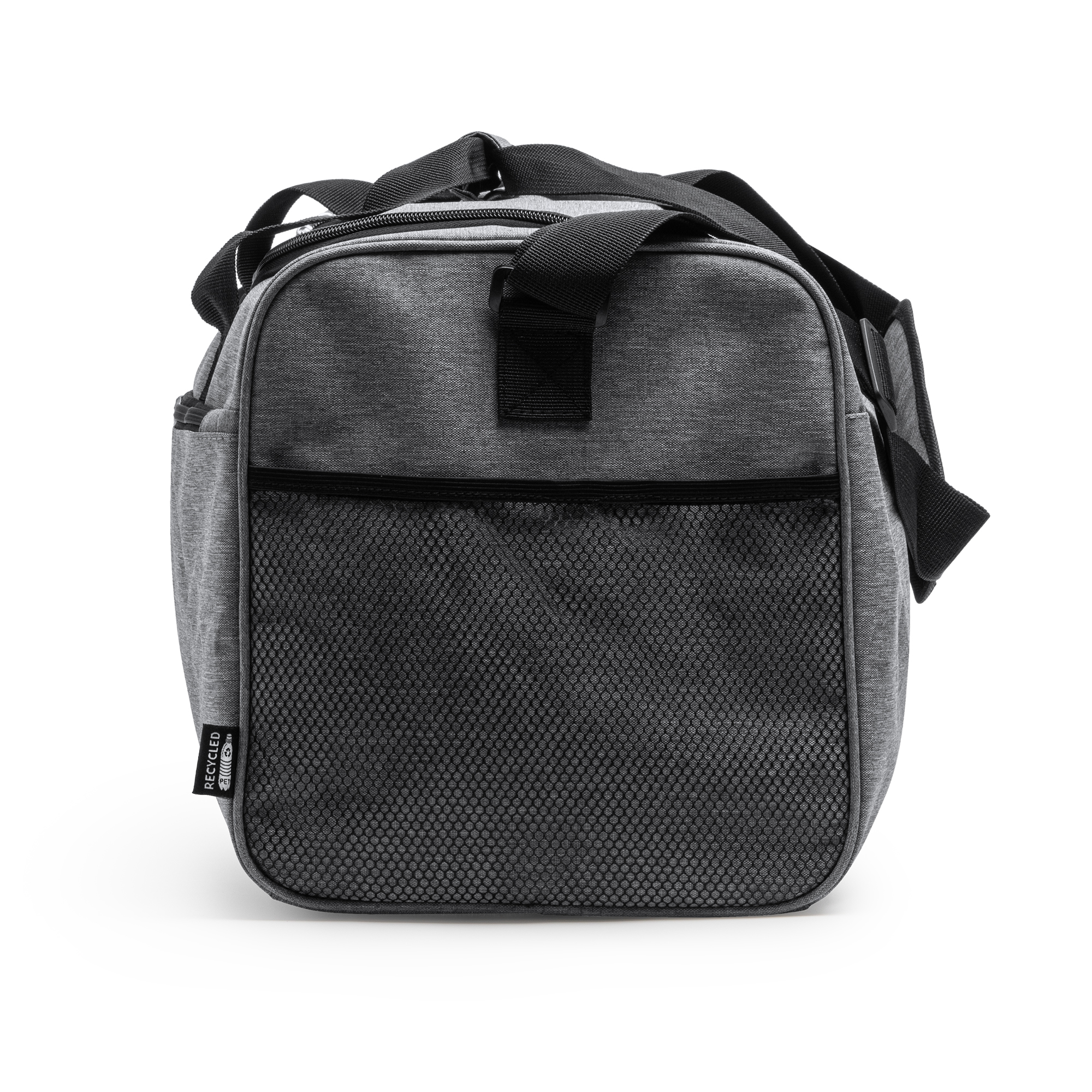 Многофункциональная сумка из 300D RPET с вересковым узором. Вместимость: 30 литров. Застежка-молния в основном и переднем кармане. Боковой сетчатый карман. Мягкий регулируемый плечевой ремень в комплекте.