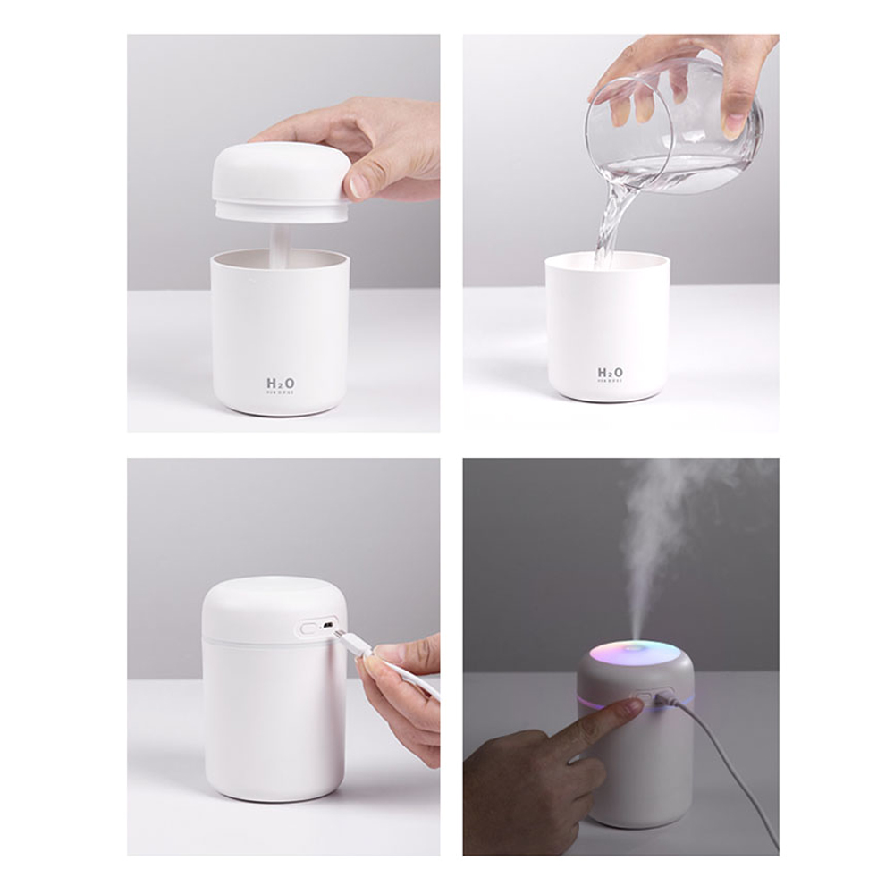 Светодиодный USB увлажнитель 2 в 1: увлажнитель и арома-диффузор AROMA, 7-ми цветовая динамическая радужная подсветка. Несколько капель эфирного масла на водорастворимой основе в воду увлажнителя, наполнит пространство ароматом и свежестью. Подходит для использования дома и в автомобиле.