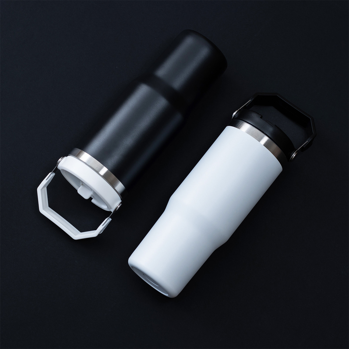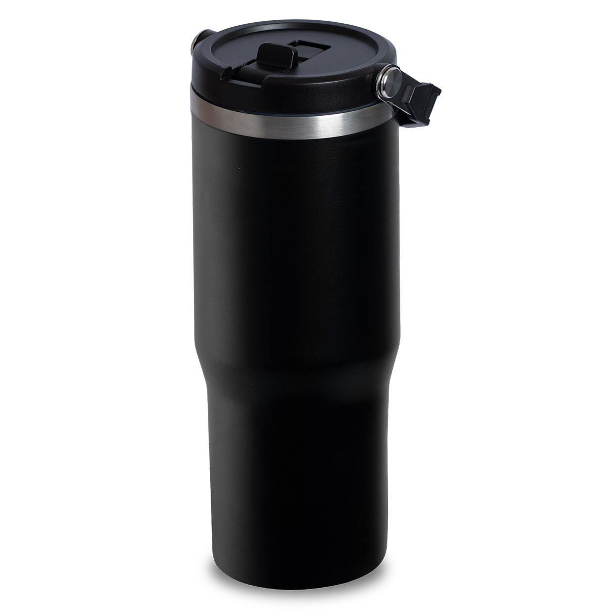 Корпус с двойными стенками из нержавеющей стали, вакуумная изоляция для сохранения температуры. Крышка продумана для удобства в любой ситуации: откидной носик для питья не требует лишних движений (внутри спрятана соломинка), а широкий диаметр позволяет легко мыть кружку и ухаживать за ней.