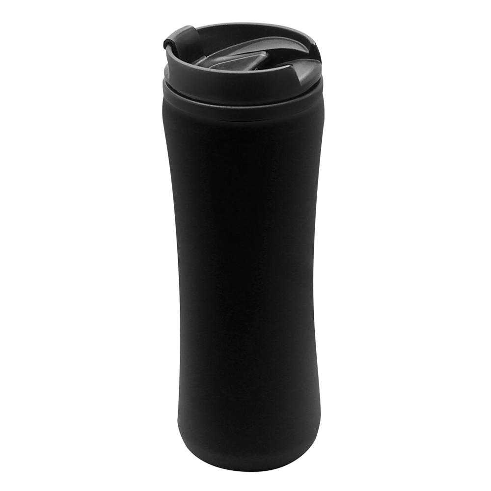 Термокружка изготовлена из нержавеющей стали с покрытием софт тач. Внутренняя колба сделана из пластика. Вакуумная конструкция. Откидной клапан позволяет пить, не снимая крышку, что помогает дольше сохранить начальную температуру напитка. Объем термокружки – 500 мл.