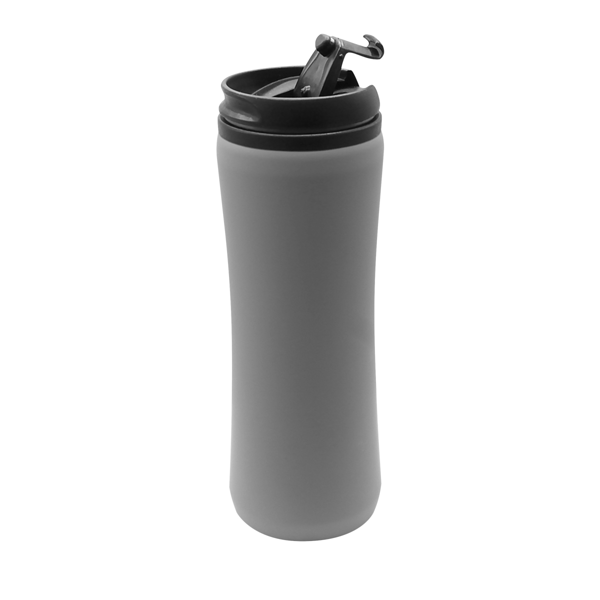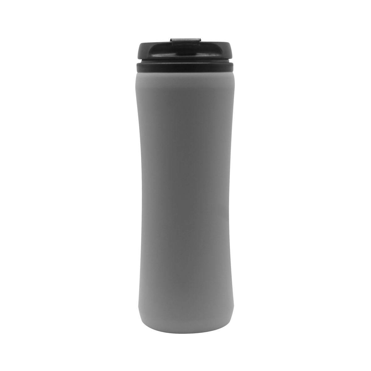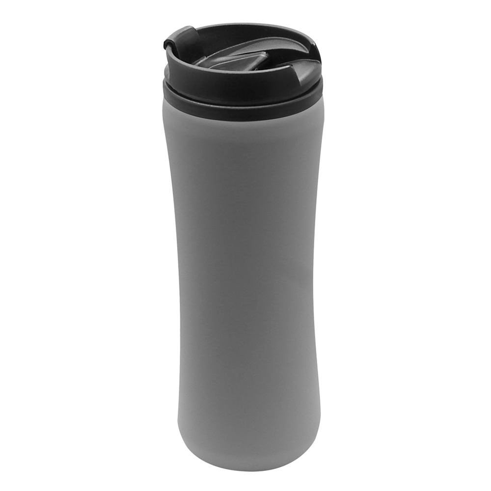 Термокружка изготовлена из нержавеющей стали с покрытием софт тач. Внутренняя колба сделана из пластика. Вакуумная конструкция. Откидной клапан позволяет пить, не снимая крышку, что помогает дольше сохранить начальную температуру напитка. Объем термокружки – 500 мл.
