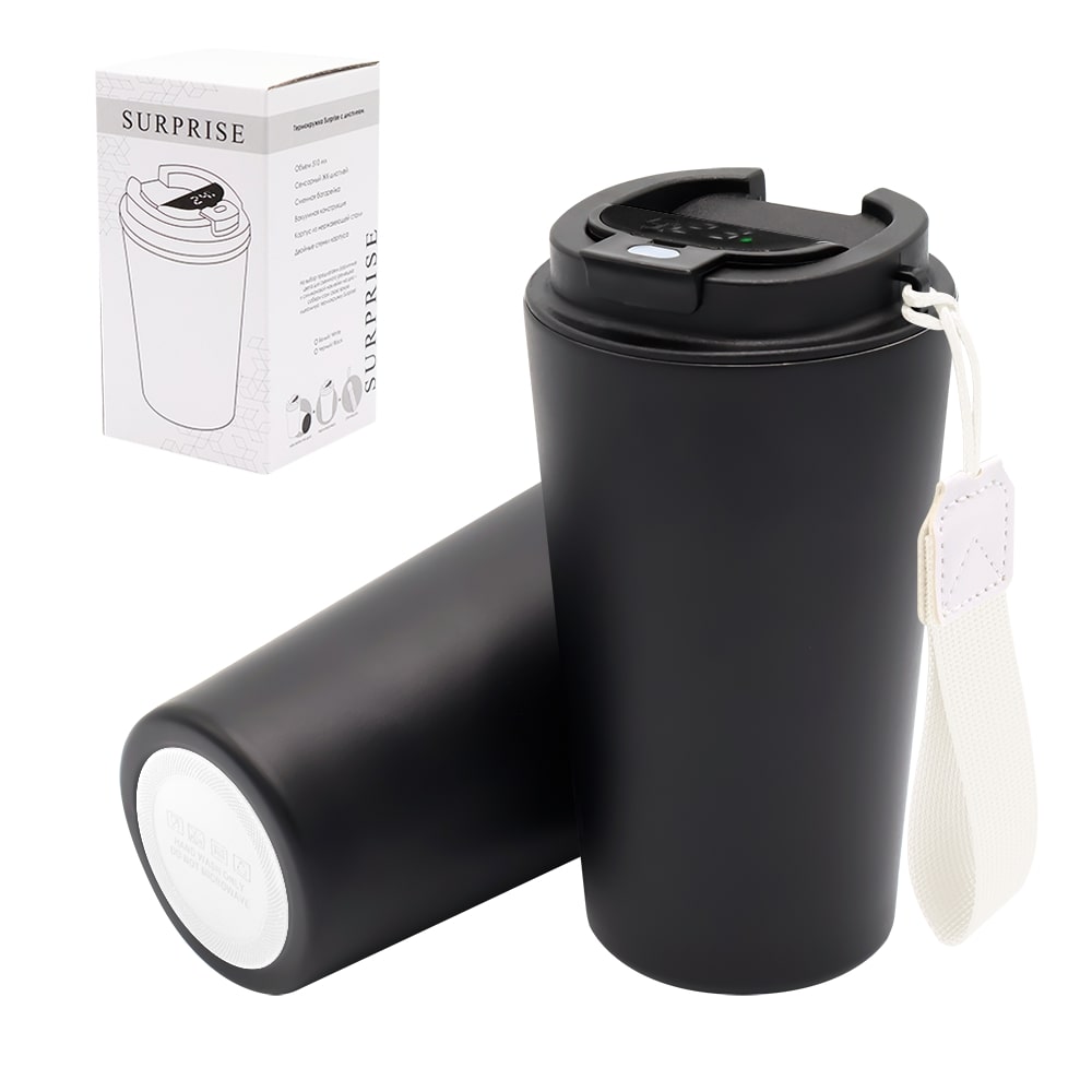 Термокружка Surprise To Go с индикатором, чёрная/белая