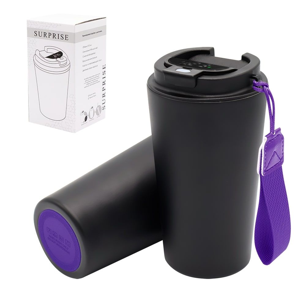 Термокружка Surprise To Go с индикатором, чёрная/фиолетовая