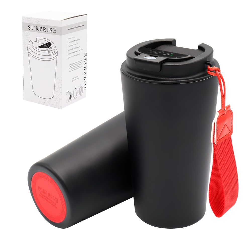 Термокружка Surprise To Go с индикатором, чёрная/красная