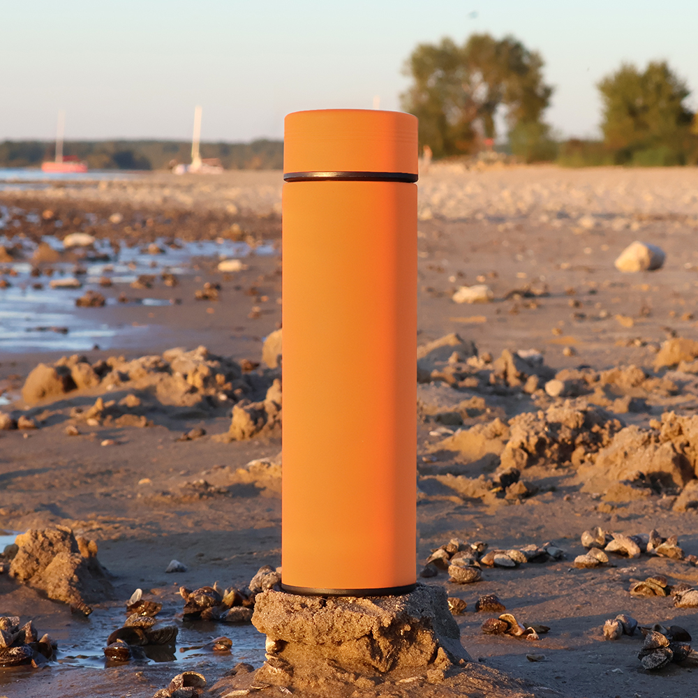 Необычайно приятный благодаря покрытию soft-touch термос BRONX в классической форме прекрасен и надежен как и вся классика. Внутри имеется съемное ситечко-инфьюзер из нержавеющей стали, что позволяет настаивать травяные напитки и чай. Оранжевый цвет максимально приближен к пантону 165С