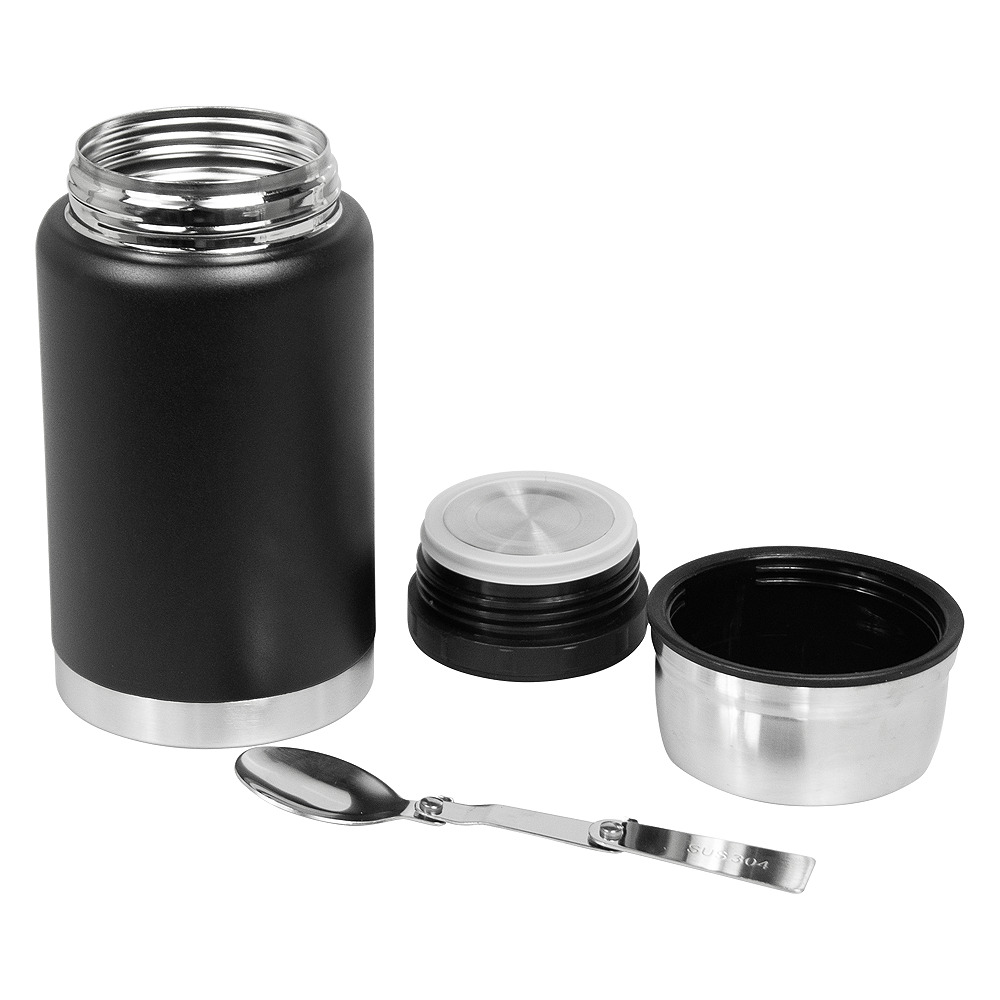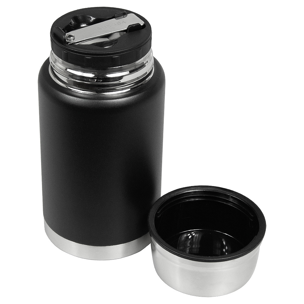 Термос объемом 620 мл выполнен в стильном черном матовом цвете.