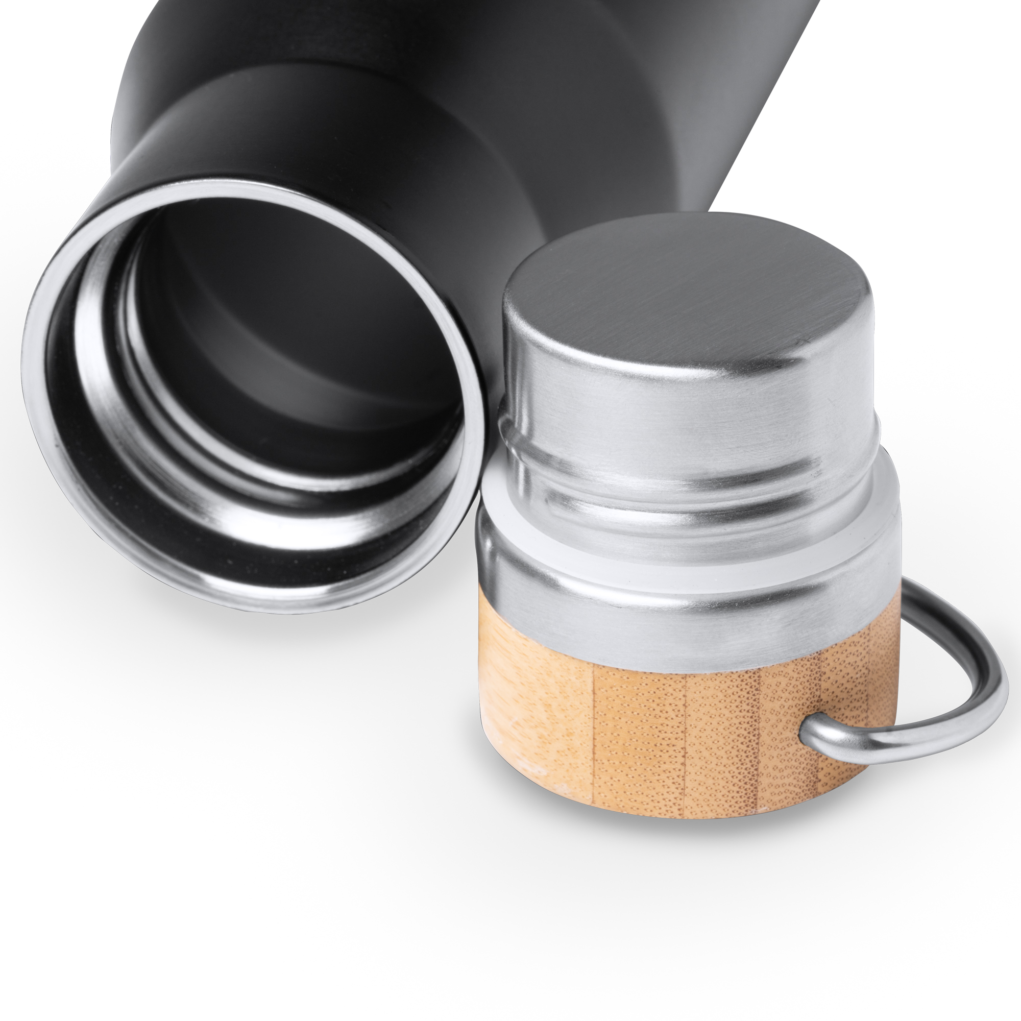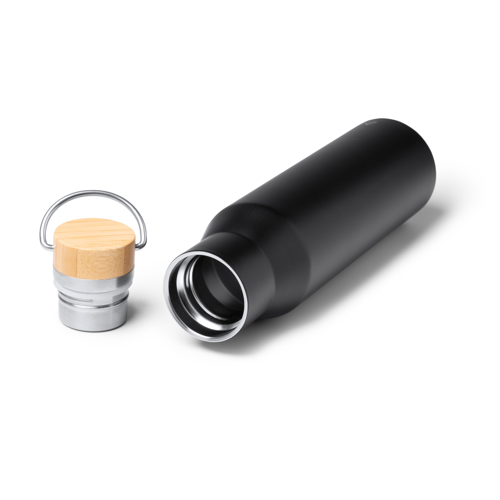 Бутылка-термос из нержавеющей стали 304 с двойной стенкой и бамбуковой крышкой. Емкость: 550 мл. Поставляется в дизайнерской эко-коробке.