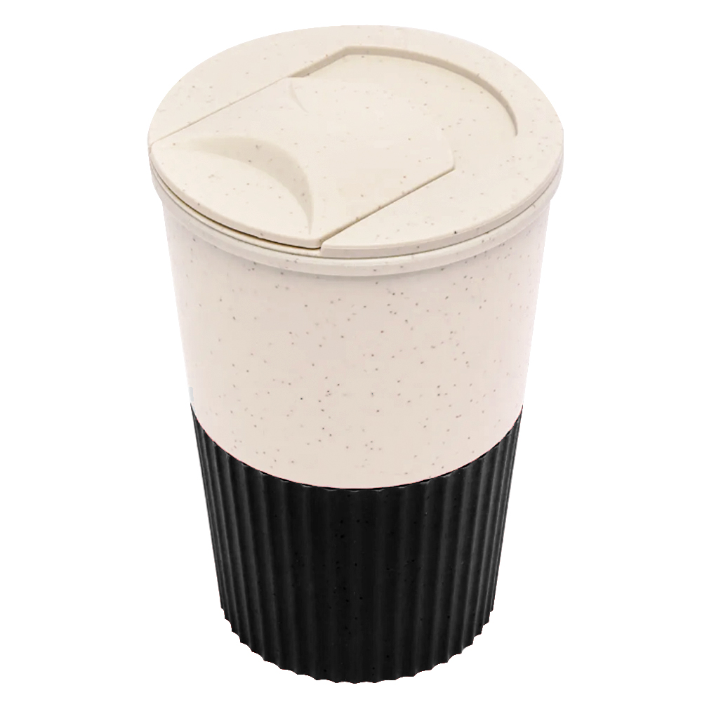 Термостакан пластиковый Wavy с манжетой, чёрный