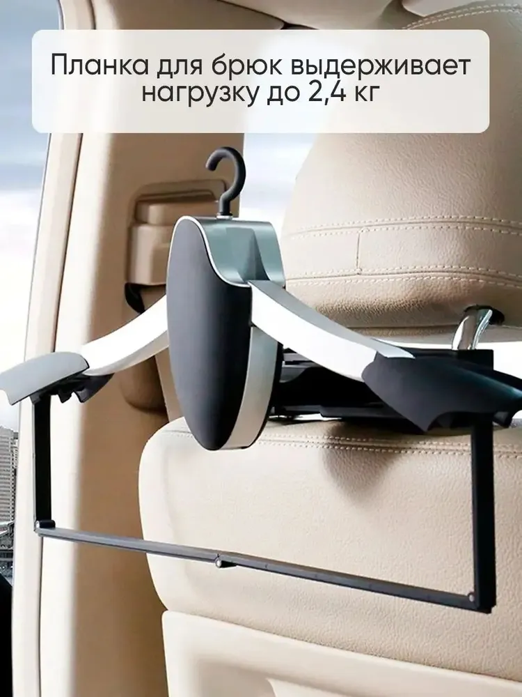 Универсальная вешалка- плечики на подголовник сиденья автомобиля серебристо- черного цвета -это незаменимая вещь для сохранности одежды в идеальном состоянии. На нее можно повесить пиджак, куртку, кардиган, платье и т.д. Преимуществом данной складной вешалки в автомобиль является наличие планки для брюк (штанов) и других предметов одежды, которые невозможно повесить на плечики. Так же снизу есть небольшие крючки, на которые можно повесить галстук или головной убор, например кепку.
