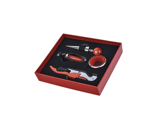 Винный набор — это идеальный подарок для ценителей вина и стильных аксессуаров. Красная картонная коробка добавляет роскоши и элегантности этому винному набору, делая его привлекательным и стильным подарком для любого случая. В комплекте: штопор с удобной рукояткой, пробка для сохранения свежести вина, каплеуловитель для чистоты сервировки и аэратор для быстрого насыщения вина кислородом — все эти предметы обеспечат приятный и незабываемый винный опыт.