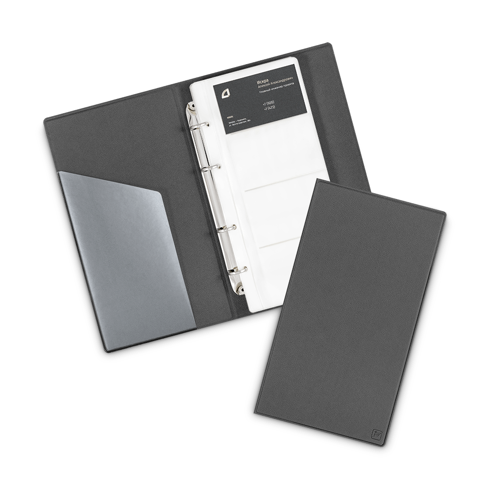 Визитница настольная на кольцах, цвет серый