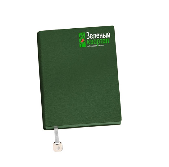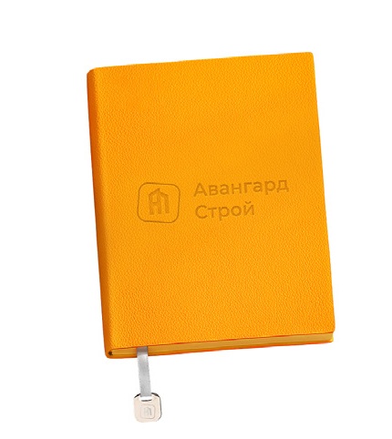 Записная книжка формата А5 с металлической закладкой-шильдом. Изготовлена из ПУ кожи, оснащена блоком из 192 страниц в линейку (бумага 80 г). Предусмотрено двойное брендирование: гравировка на шильде и нанесение на обложку