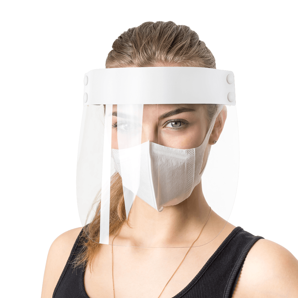 Защитный экран для лица без печати имеет строгий стиль и лаконичный дизайн.