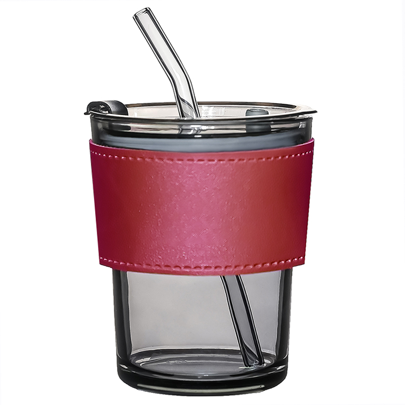 Стакан стеклянный с трубочкой и капхолдером Karamel