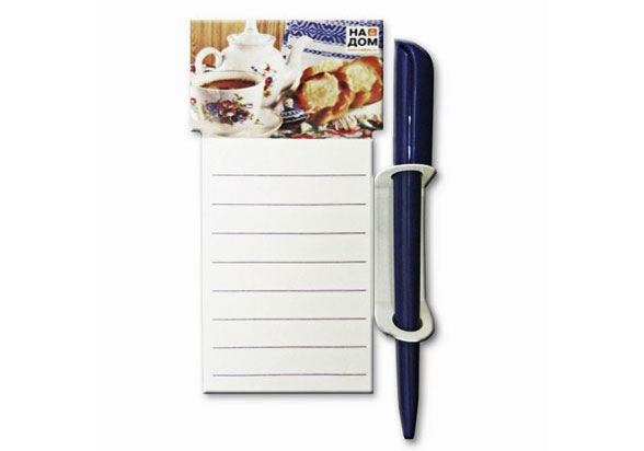 Магнит на холодильник с блокнотом для записей, дополнительно укомплектованный держателем для ручки или карандаша. Когда потребуется сделать заметку, мини-блокнот всегда окажется под рукой.