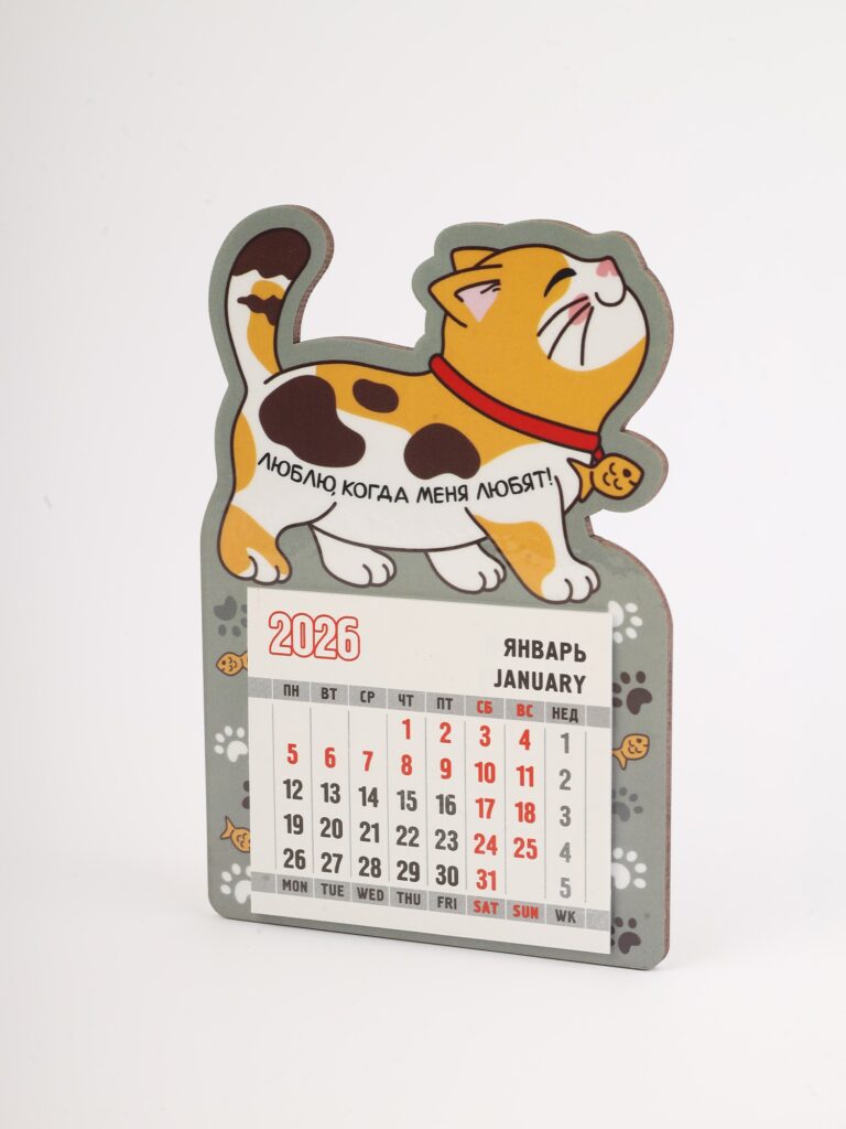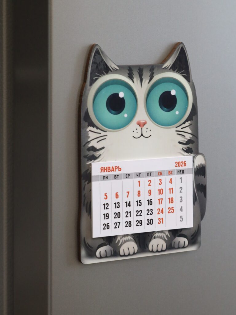 Календарь сделан из прочного МДФ толщиной 3 мм. Благодаря магнитному креплению легко прикрепляется к холодильнику или другой металлической поверхности. Размер магнита 100х150 мм, размер отрывного блока 74х65 мм. Отличный выбор для подарков сотрудникам, партнёрам и клиентам.