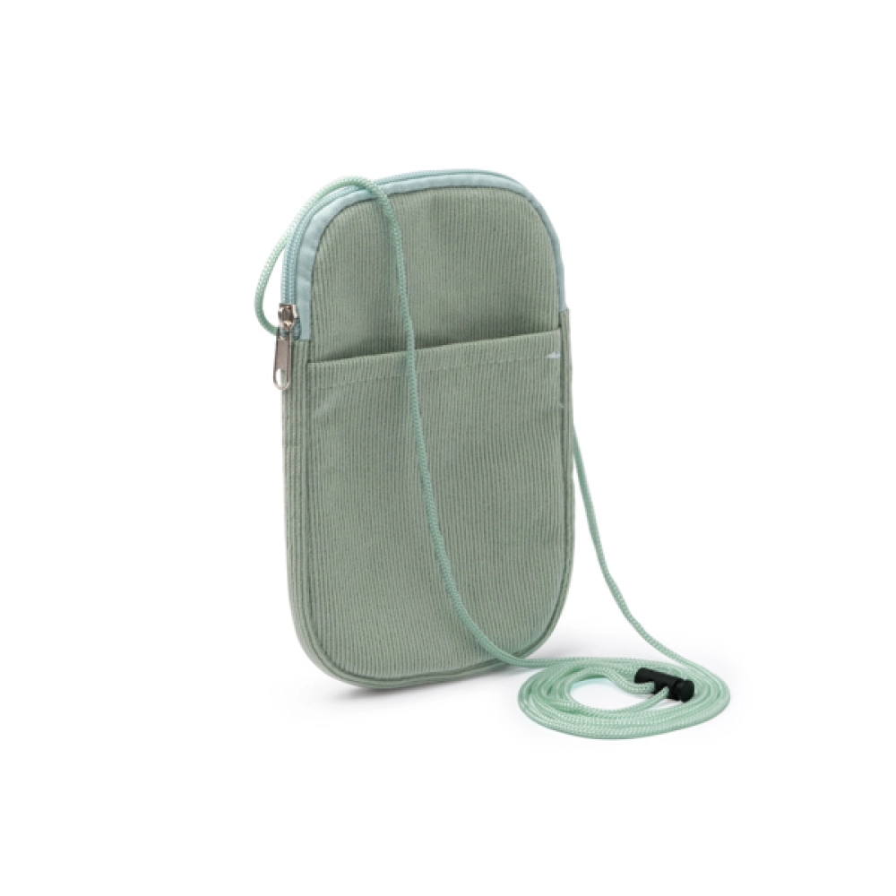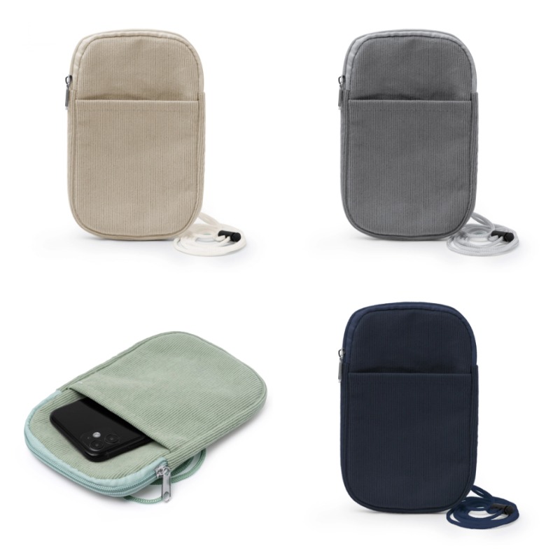 Держатель для мобильного телефона из вельветовой ткани. Основное отделение с застежкой на молнии в тон. Внешний карман. В комплекте идет съемный плечевой ремень.