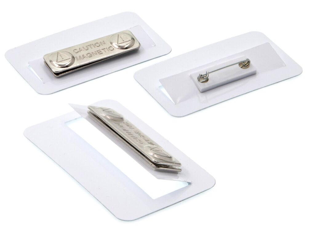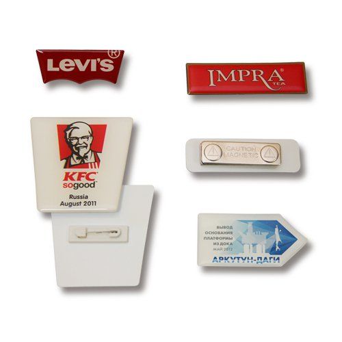 Качественный пластик практически не ощущается на одежде. Бейдж надёжно крепится к одежде с помощью булавки или магнита на выбор.