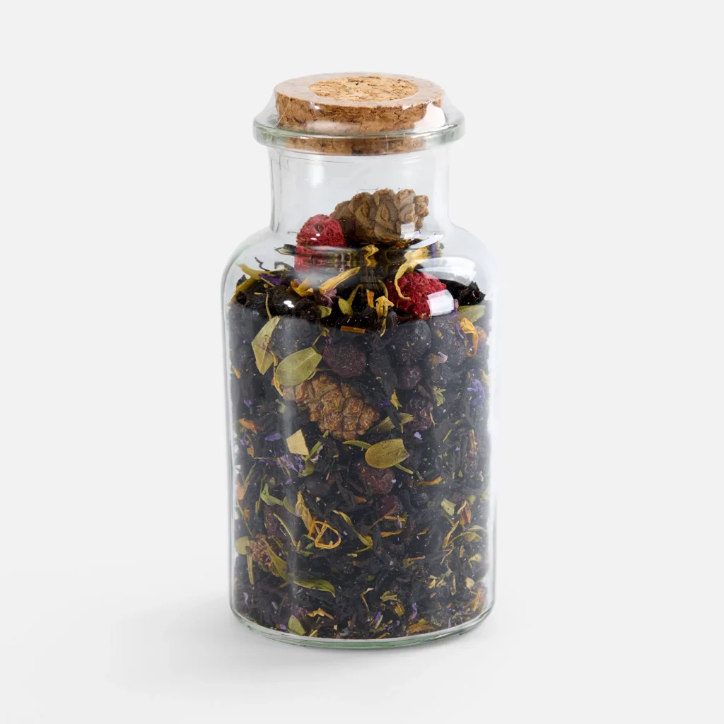 В наборе Forest Pump собраны дары сибирской природы: ароматный медовый десерт с хрустящими орехами, цукатами и семенами, а также травяной чай «Сила Сибири» на основе крепкого черного чая с лесными травами, ягодами и хвойными нотами, создающими гармоничный вкус со сладковатым послевкусием.