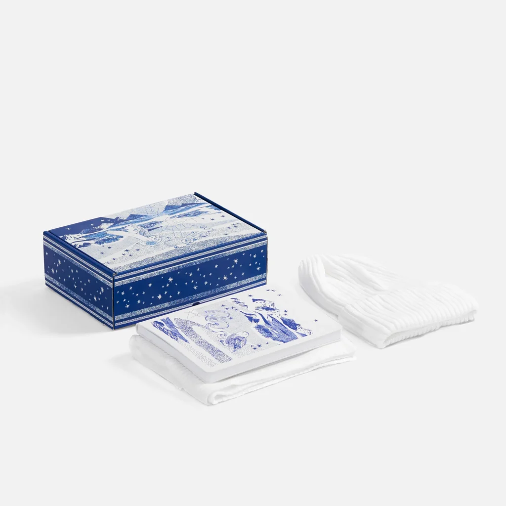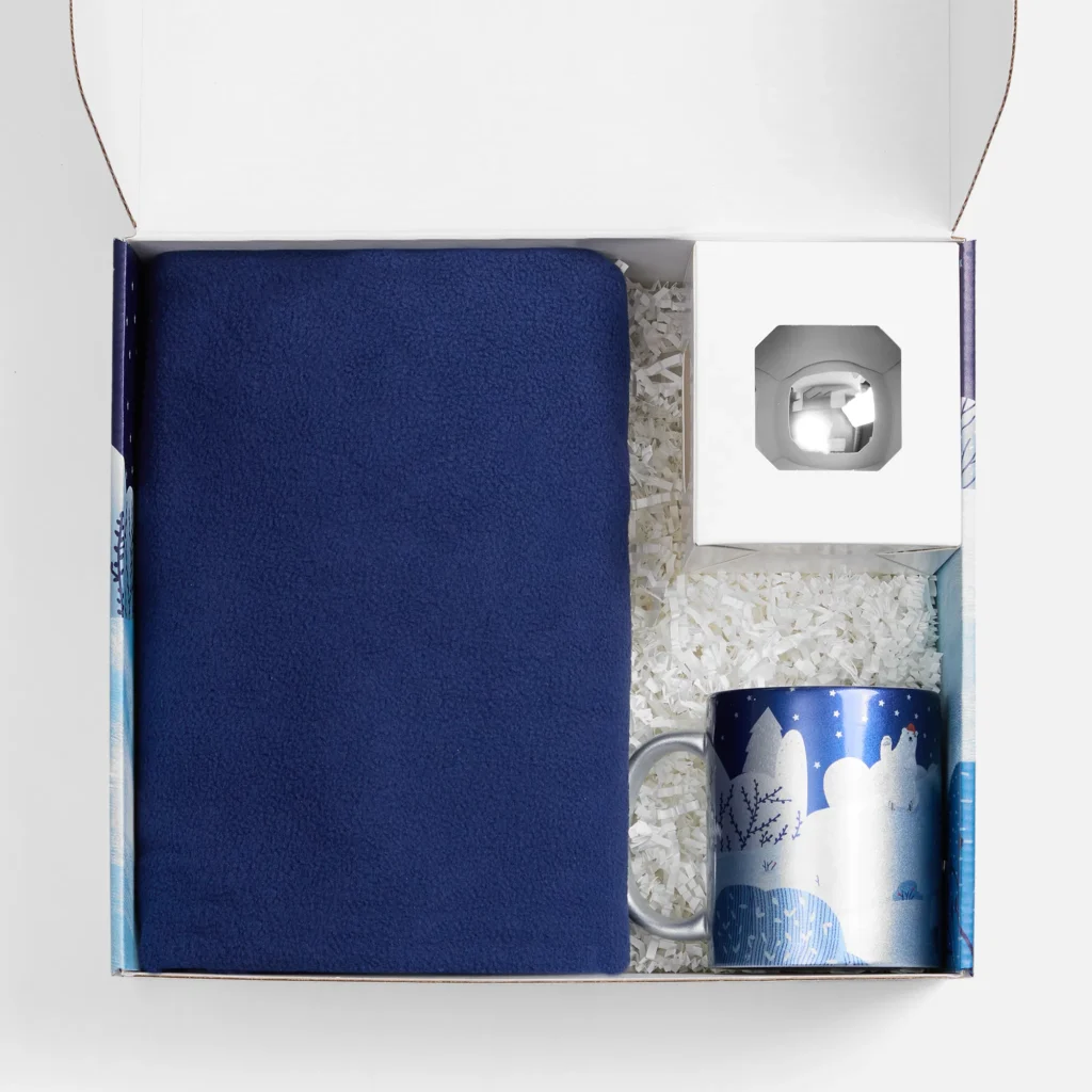 «Праздничный полюс» сочетает практичность с новогодней эстетикой — это готовый сценарий уютного вечера. Каждый элемент набора — часть праздничной умиротворяющей истории, где нет места суете, а есть только тихие радости: укрыться пледом, сделать глоток любимого горячего напитка и повесить на елку еще одну искрящуюся деталь. Это подарок, который говорит: «Пора замедлиться и впустить волшебство!».