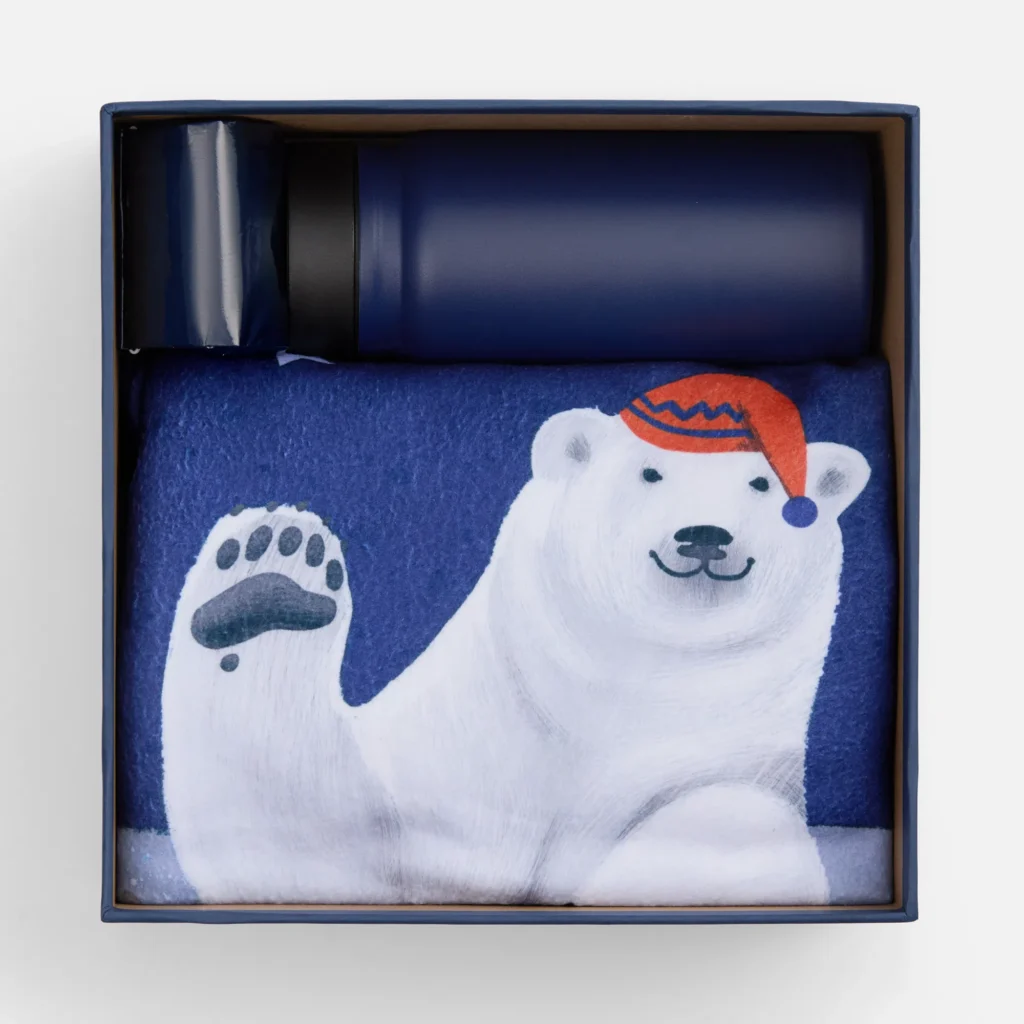 Подарочный набор, который так и шепчет: «сказка близко». Уютнейший плед с красочным изображением белых мишек, надежный стильный термостакан и необычный чай с насыщенным черничным ароматом — идеальная компания для умиротворяющего домашнего отдыха в сезон новогодней суеты или после главных зимних развлечений. Это теплое объятие и искренняя забота — то, что нужно в праздники, когда так хочется поверить в чудеса.
