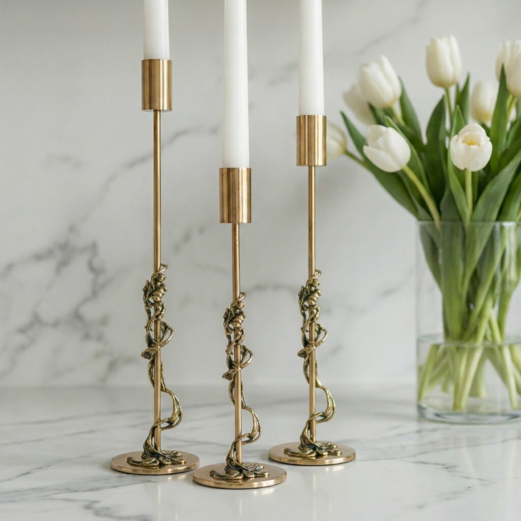 Ирис — цветок, который с древних времён считается символом красоты, надежды и мудрости. Его изящный и утончённый образ воплощён в этом наборе из трёх подсвечников, создающих атмосферу уюта и душевного тепла. Каждый подсвечник — воплощение природной гармонии и тонкой эстетики, идеально подходящий для создания особенного настроения в доме или офисе.